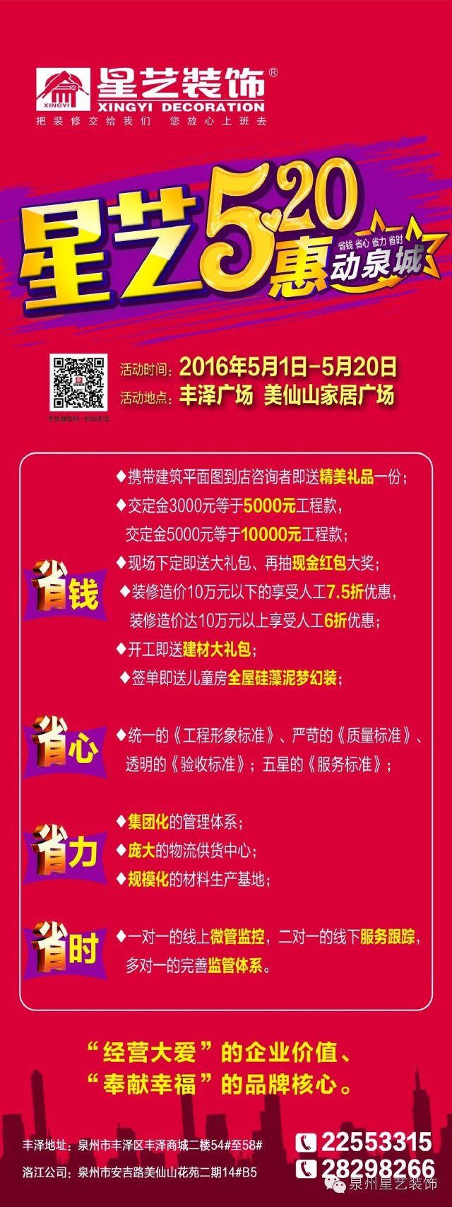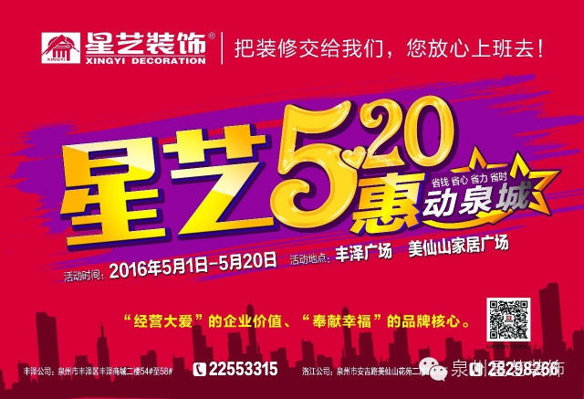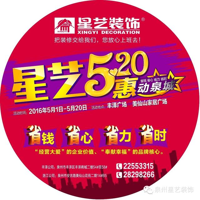 值此泉州星艺装饰成立16年之际,为答谢广大客户朋友多年以来对星艺装饰支持与厚爱,特举办“星艺装饰5.20”活动。